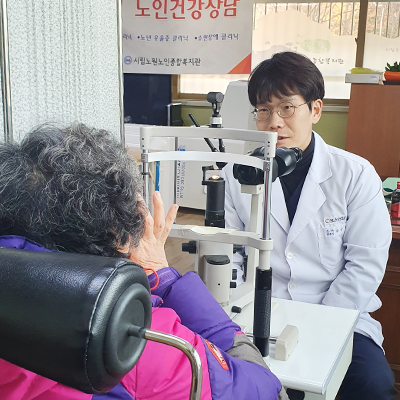 부쩍 추워진 날씨에 주위 노인분들의 눈 건강 검진을 위해 자리를 마련하였습니다.