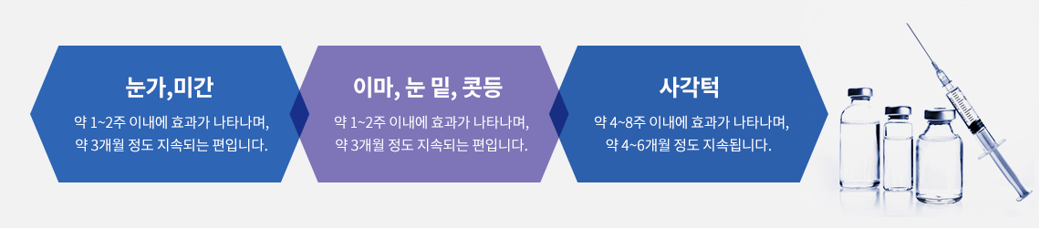 보툴리눔 톡신의 독소를 이용해 주름진 피부 속 근육을 마비시키는 시술 방법입니다.