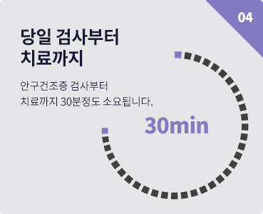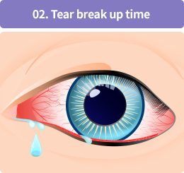 눈물이 마르는 시간을 측정하여 건조함의 정도를 확인합니다.