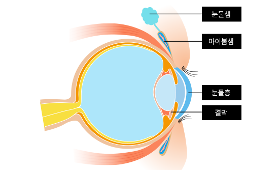 눈물이 지나치게 증발하거나, 눈물 구성층의 균형이 맞지 않아서 발생합니다.